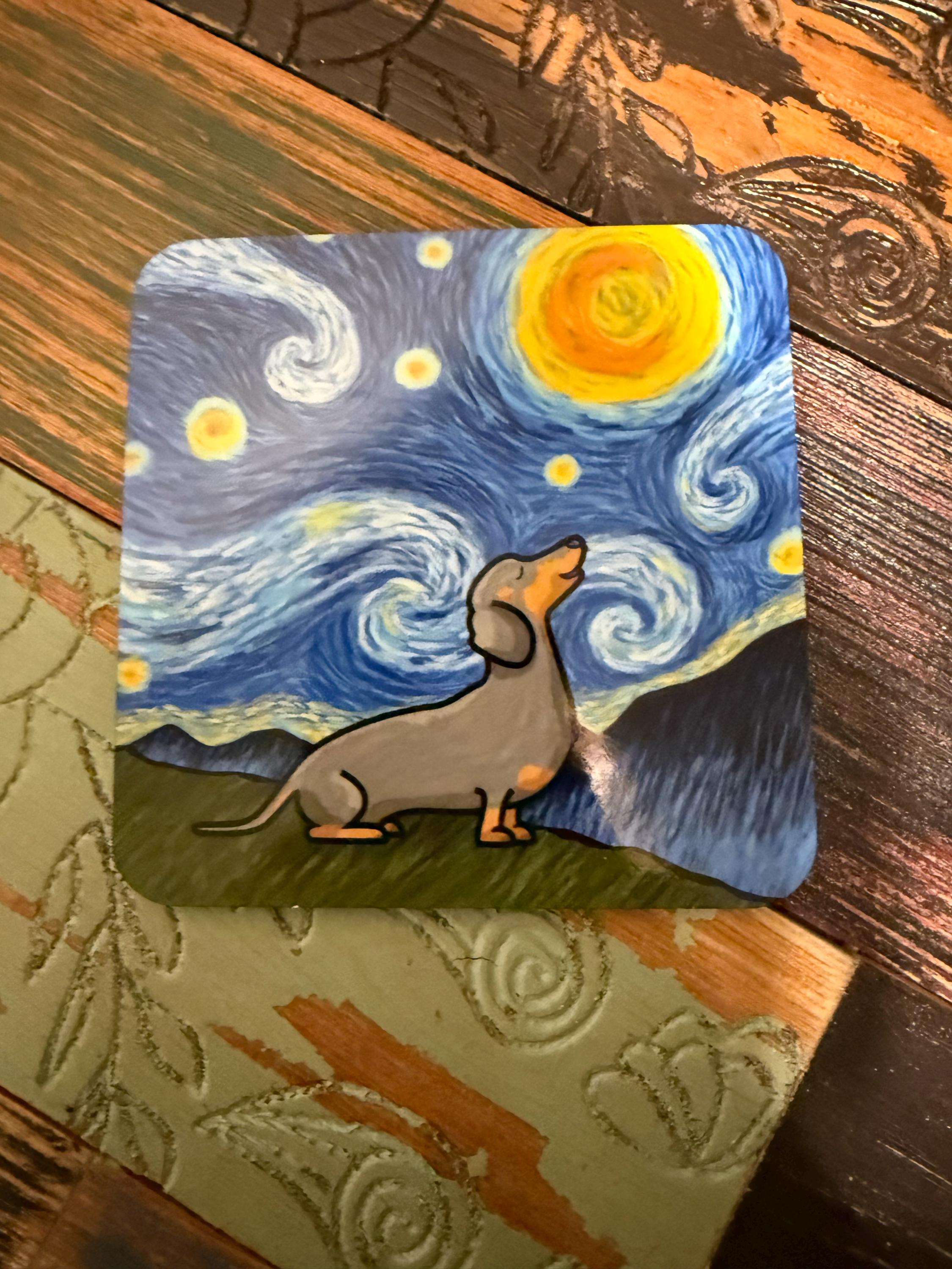 These durable and stylish Dachshund coasters measure 3.75" square and are made of coated hardboard with a cork backing.