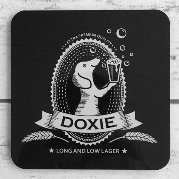 These unique and original coasters are a great gift for the dachshund lover in your life! Featuring my original Doxie Beer Label design, these durable and stylish dachshund coasters measure 3.75" square and are made of gloss coated hardboard with a cork backing.